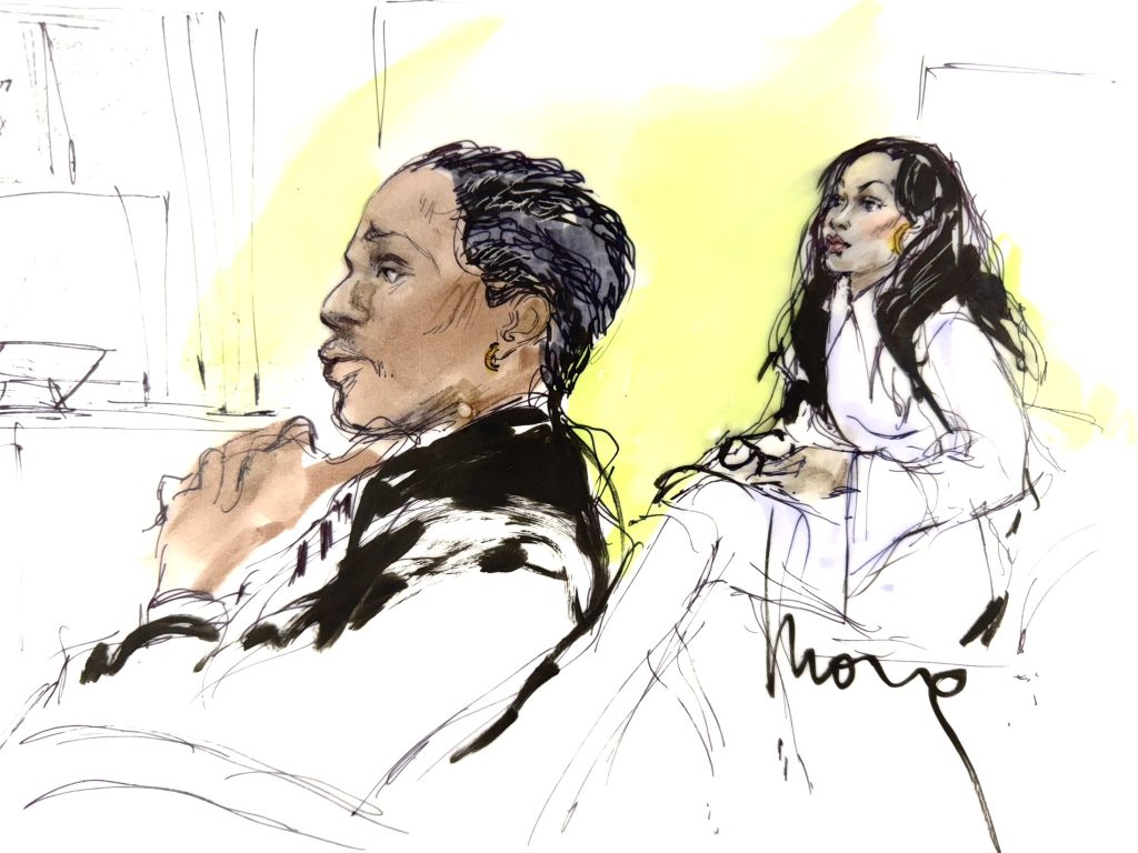 O esboço feito por Mona Edwards ilustrou a cena; embora câmeras tenham sido permitidas nesse caso. O esboço mostra o casal atento ao processo, Rocky mostrando-se totalmente imerso no caso , enquanto Rihanna é retratada sentada atrás de Rocky, com um olhar intenso e firme no rosto.