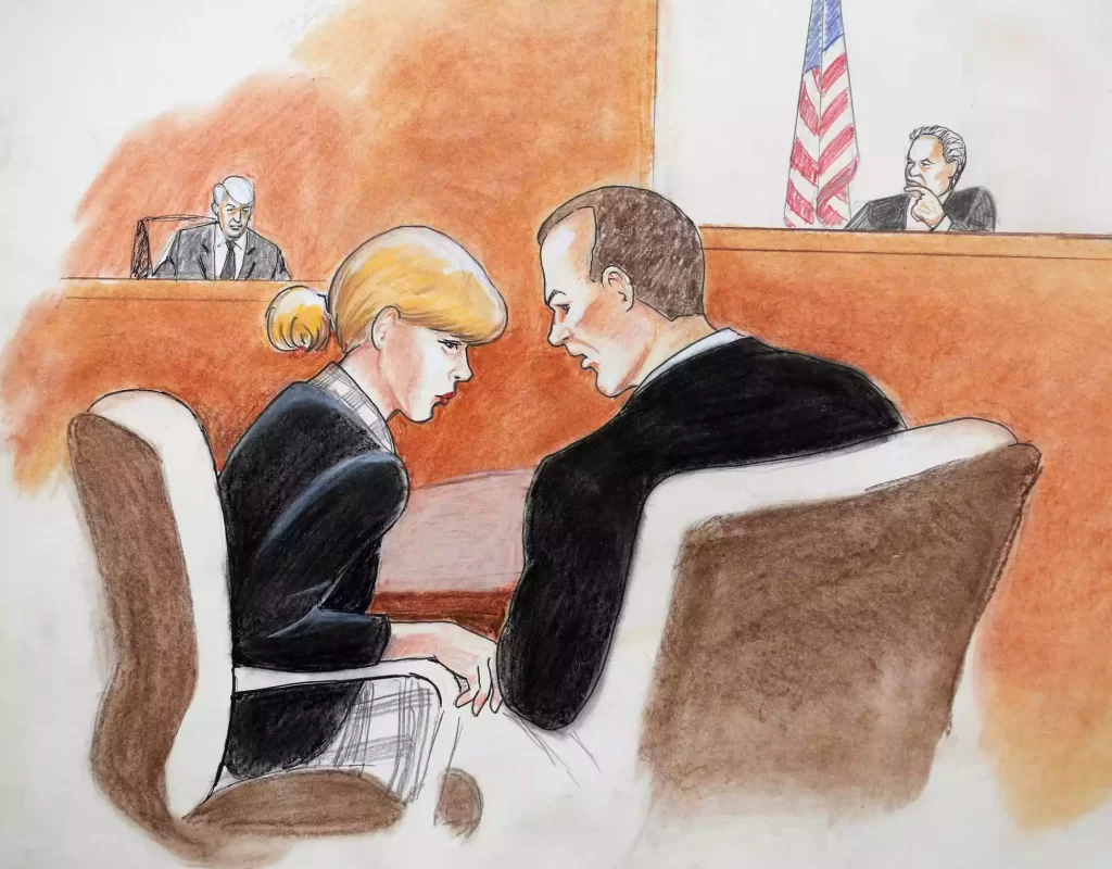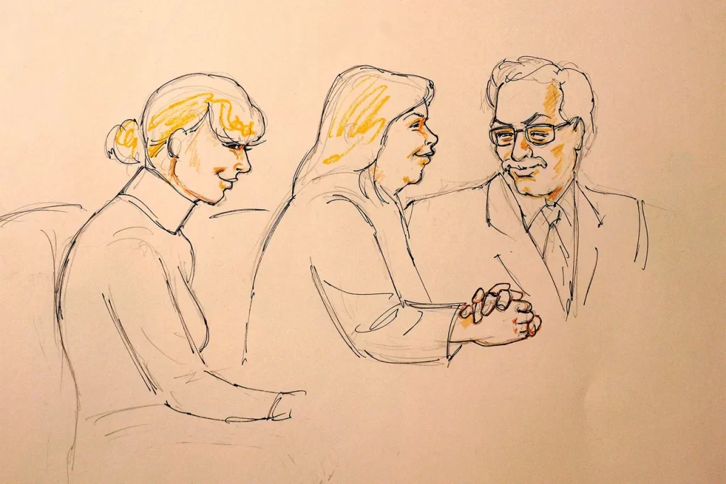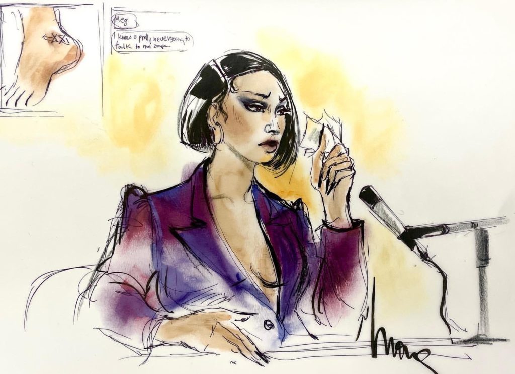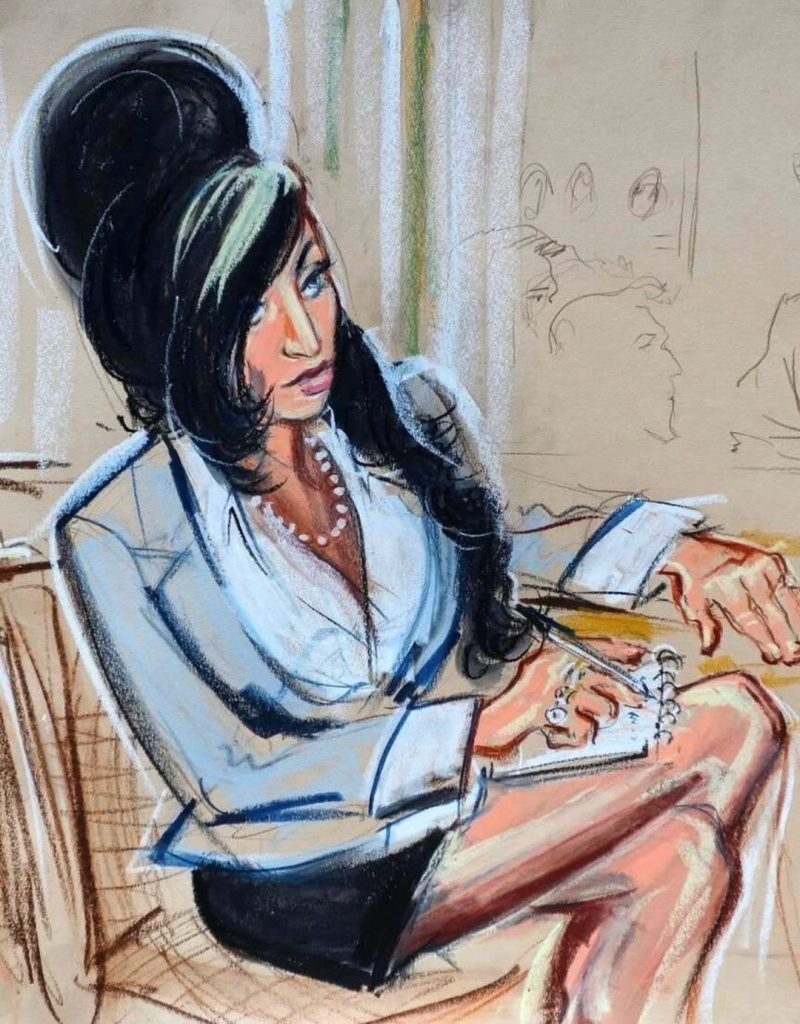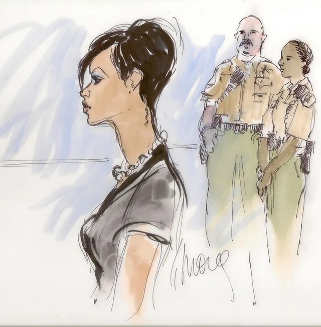Foi nesse contexto que nasceu um dos esboços mais icônicos do tribunal moderno: A cada audiência, a artista de tribunal Mona Shafer Edwards estava lá para registrar com olhar clínico mais uma estrela em colapso público.