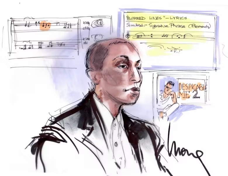 A família de Marvin Gaye alegou que o hit copiou a “vibe” e estrutura da obra “Got to Give It Up” de 1977 de Gaye. O tribunal decidiu, Pharrell e Thicke foram condenados a pagar uma indenização que começou em US$ 7,3 milhões, depois reduzida para US$ 5,3 milhões em 2018. A decisão da corte dividiu opiniões entre gravadoras musicais e fãs: Uns viram o caso como um golpe para a inovação, temendo que a indústria passasse a punir referências e inspirações, outros celebraram como sendo uma vitória da ancestralidade musical negra defendendo o direito de Marvin Gaye; um dos pilares do soul ser reconhecido como fonte criativa inigualável. A música “Blurred Lines” se tornou um hit provando que até harmonia têm dono.