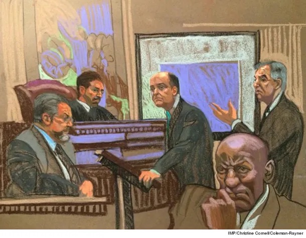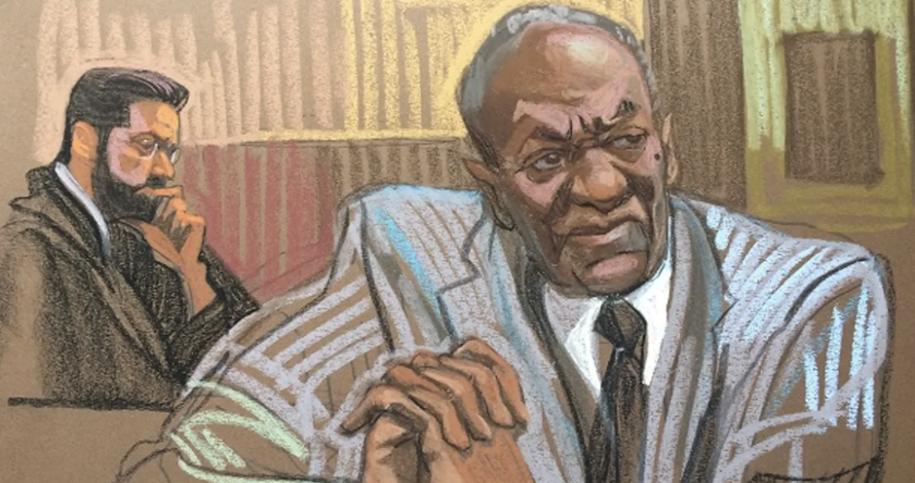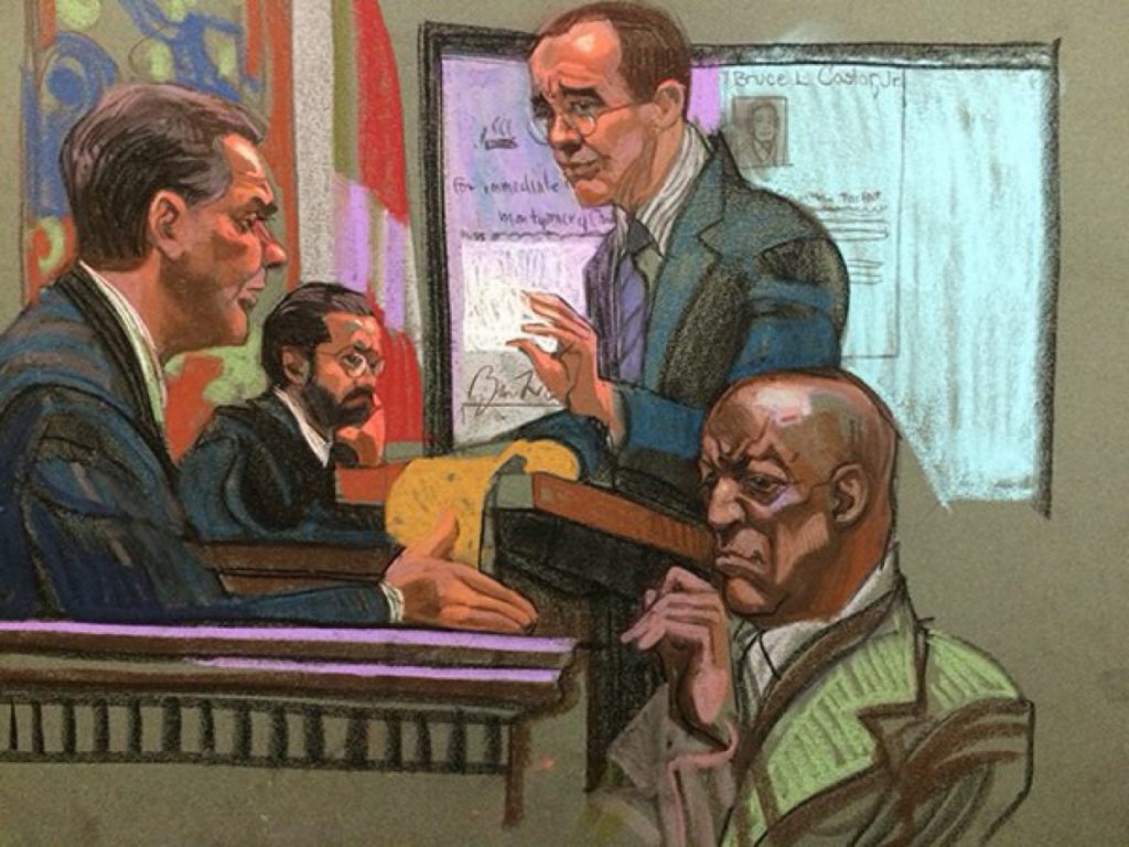 Os esboços do tribunal de Bill Cosby foram desenhados por vários artistas, incluindo Christine Cornell, Jane Rosenberg e Lauren Tamaki, que trabalharam para capturar o drama e os principais momentos do processo publicados por The New York Times e Times, Christine Cornel disse que Bill Cosby era fácil de desenhar pois se assemelhava a uma gárgula com traços muito trágicos e expressivos.