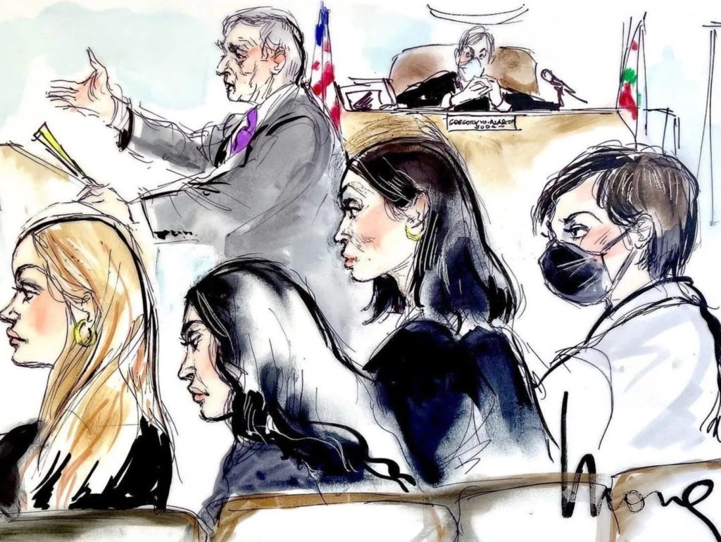 Os esboços do tribunal do caso foram criados por Jane Rosenberg.