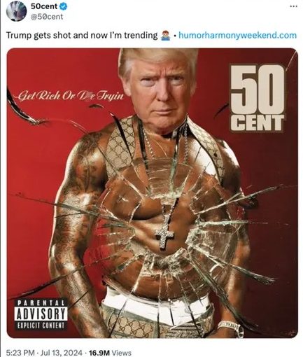 Poucas horas depois da agência de noticias The Associated Press divulgar a foto icônica, figuras importantes do mundo do entretenimento, incluindo Elon Musk e o rapper 50 Cent, compartilharam suas reações contra o atentado à vida do ex-presidente. e-commerce chineses entraram em ação no Taobao.com e no JD.com, principais plataformas de varejo do país, para lucrar com as imagens, em um espaço de 3 horas mais de 2.000 encomendas da China e dos Estados Unidos foram realizadas.