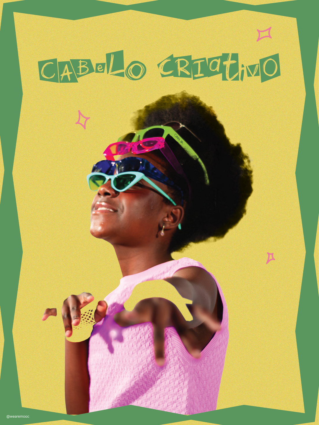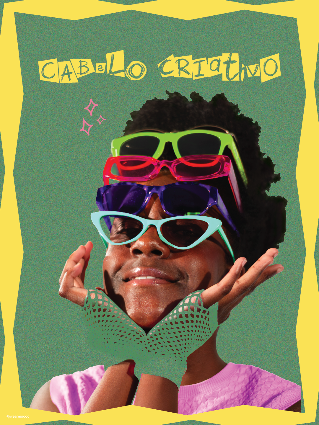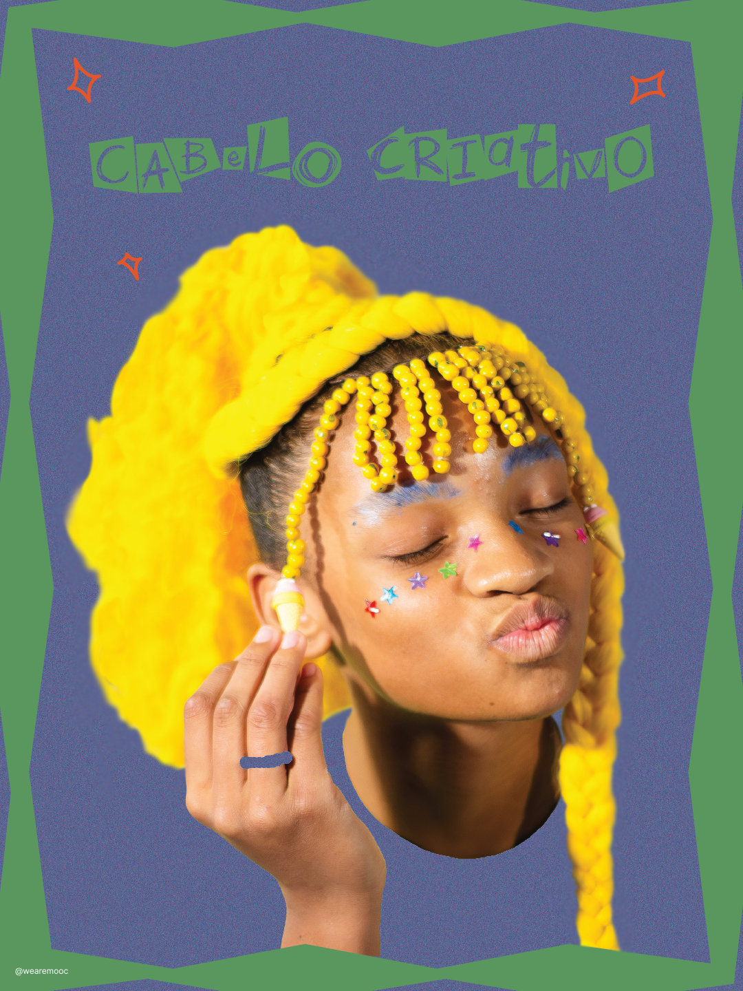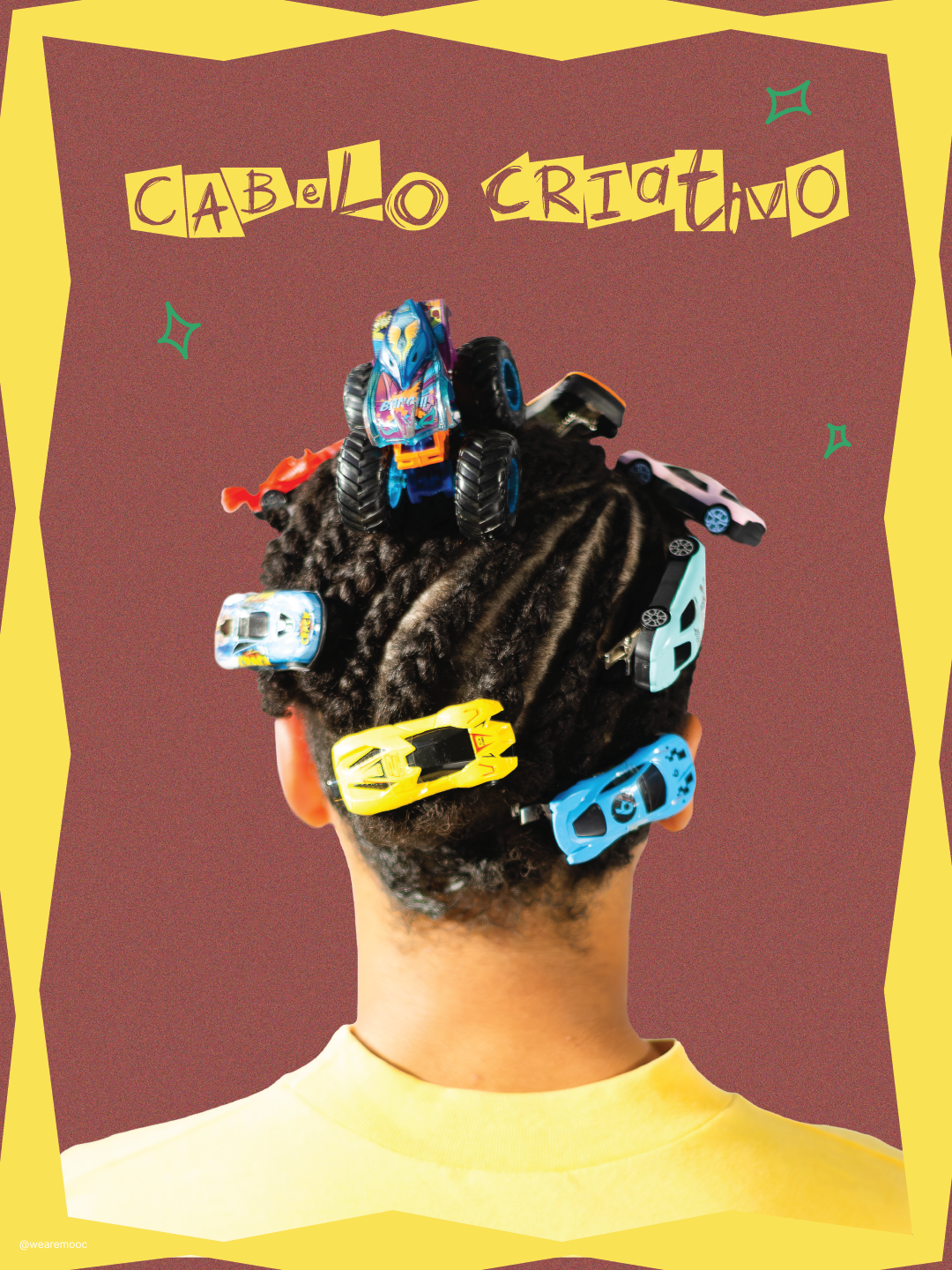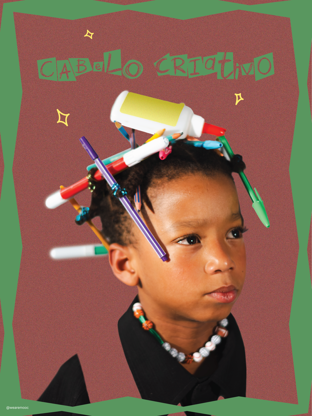 Propomos a nossa leitura criativa sobre o tema: Reivindicando que o cabelo não é um objeto de zombaria ou esoterismo, mas um território criativo, uma extensão da identidade e personalidade.