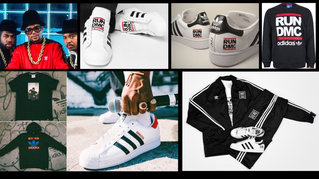 Mas nem sempre foi assim, essa proximidade só passou a existir no fim dos anos 80 como um leve flerte entre o hip-hop e a marca alemã Adidas, na época o modelo Superstar brilhou nas quadras de basquete e acabou sendo adotado por grande parte da comunidade do hip-hop junto com o icónico agasalho esportivo das três listras. Foi então que o grupo RUN DMC lançou a música “My Adidas” homenageando o tênis e exaltando a presença dele tão importante quanto a de um parceiro da quebrada.